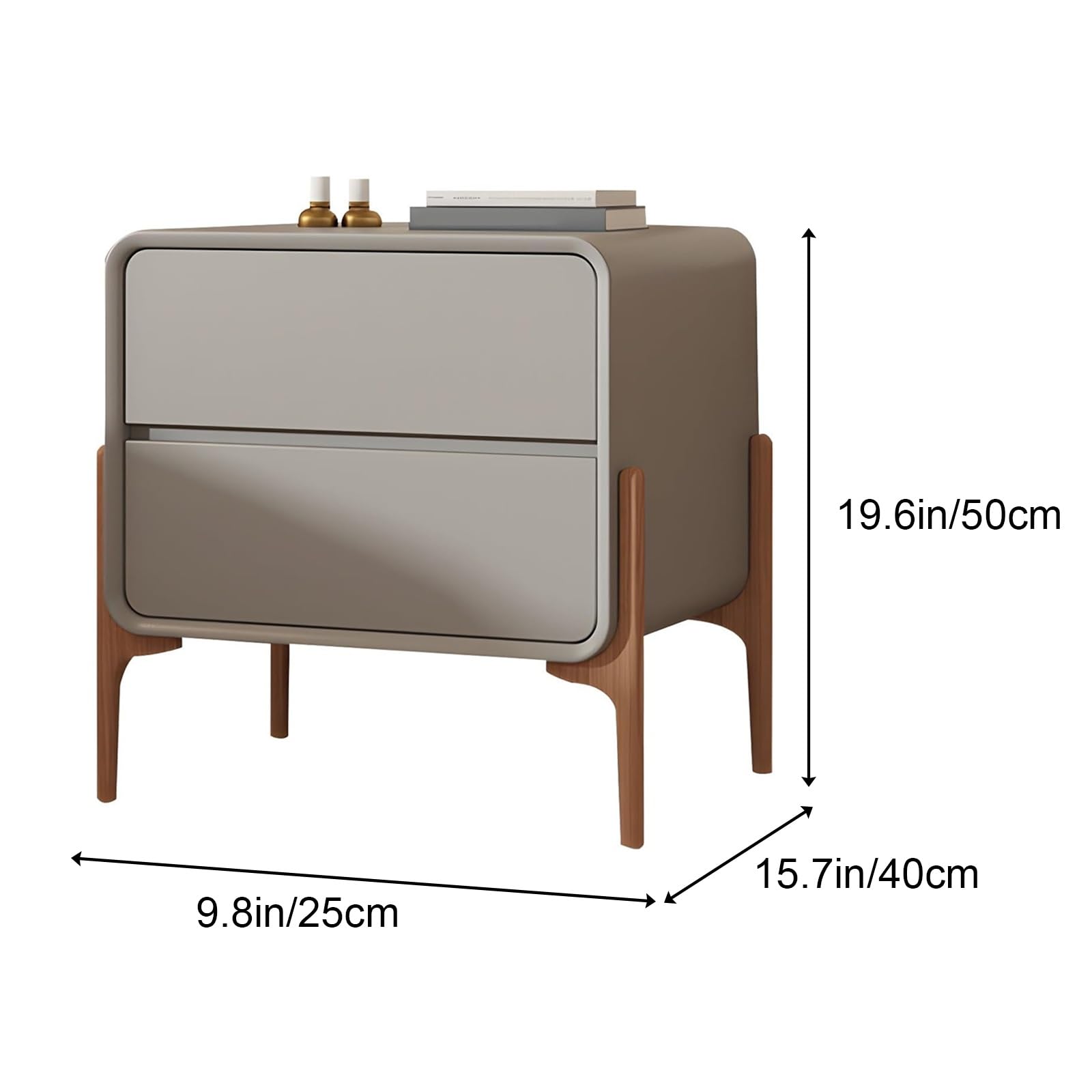 Mesita de Noche Moderna con 2 Cajones y Patas Altas – 25x40x50 cm – Color Gris – Estilo Minimalista – ATAPNLNMTZ
