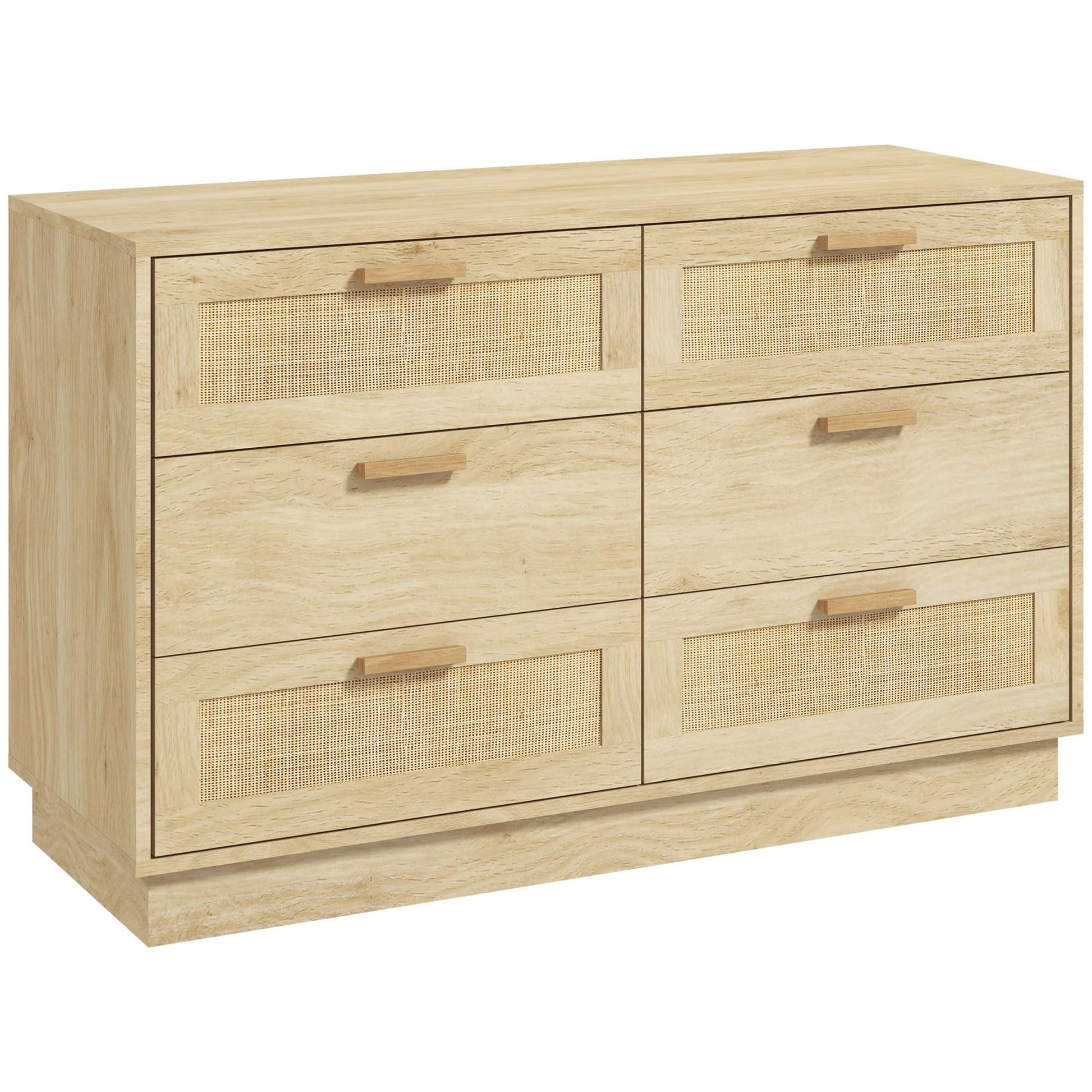 Cómoda de Noche con Cajones de Ratán – Estilo Bohemio – 110x40x69 cm – Color Roble Natural – HOMCOM